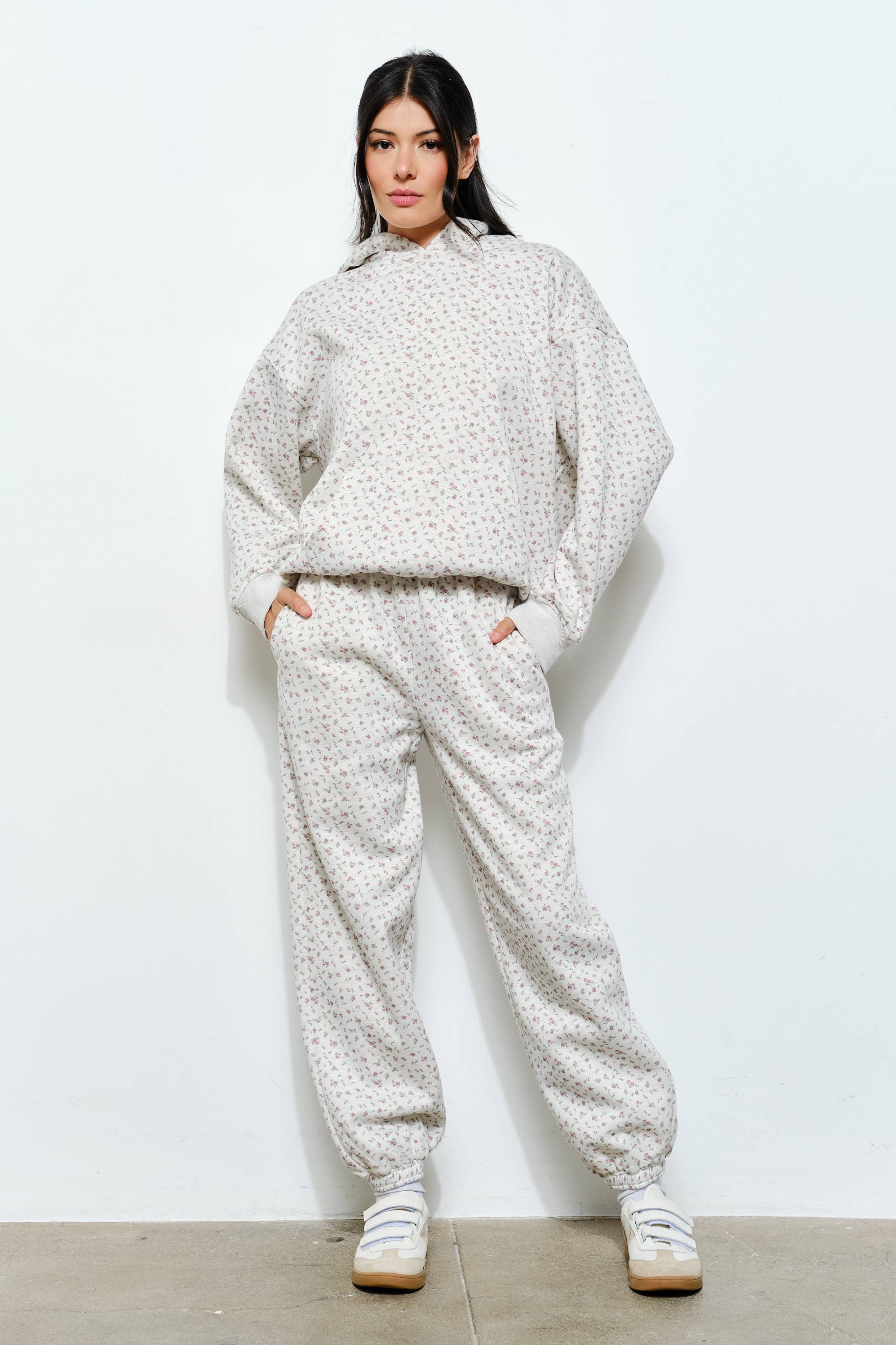 Brighten up your everyday style with the Leanne Joggers—where playful charm meets effortless comfort. Featuring a sweet ditsy floral pattern, these joggers offer a fresh, feminine touch to your casual wardrobe. The elasticized waistband and cuffs provide a relaxed, easy fit, while side pockets keep your essentials close for life on the move.