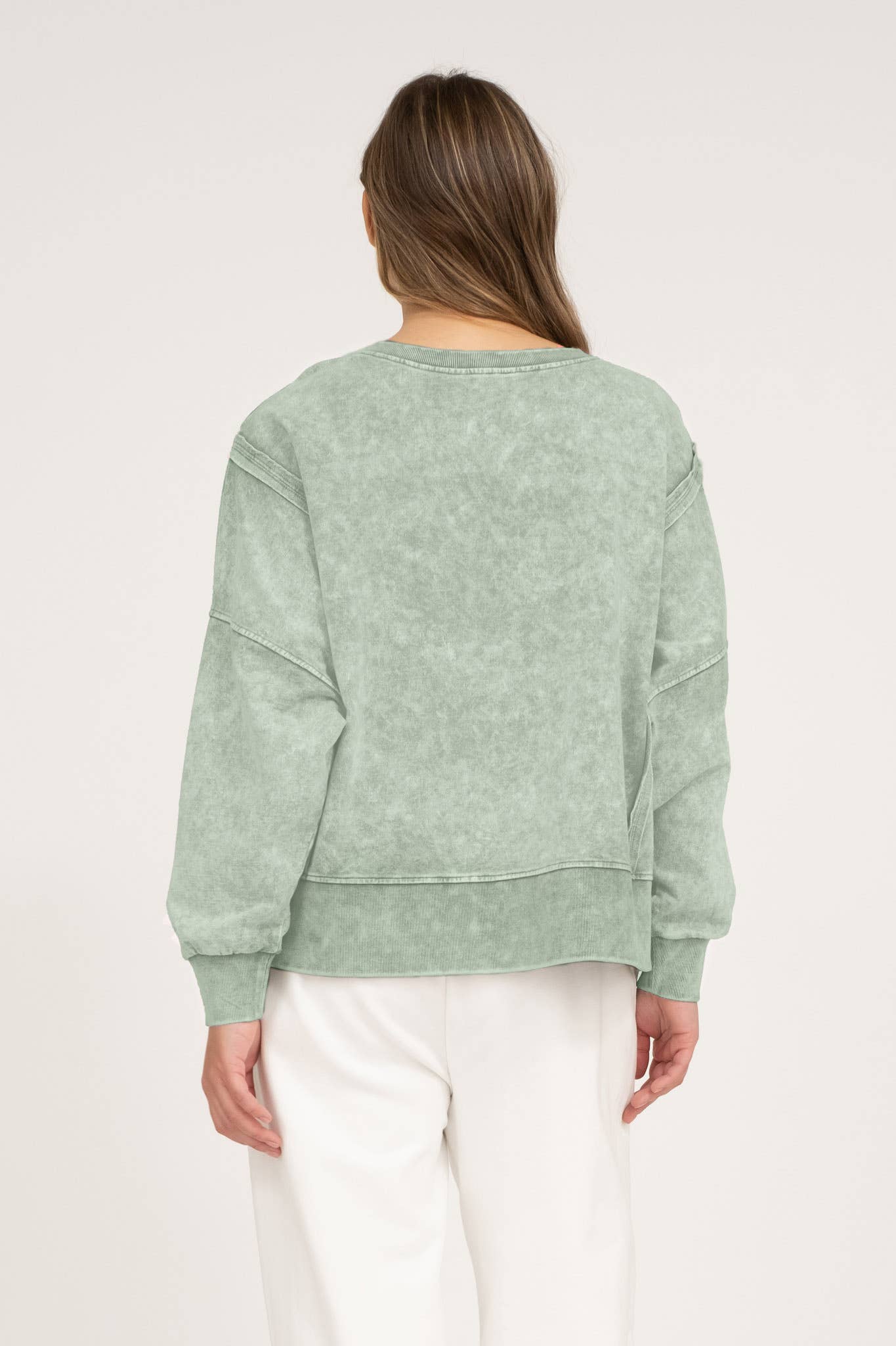 Refresh your casual wardrobe with this standout acid-wash knit top. Designed with a classic crewneck, extended shoulders, and long sleeves, it offers an effortlessly relaxed silhouette. Unique patchwork detailing gives the piece a stylish, handcrafted feel, while the acid-washed finish ensures every top has its own one-of-a-kind look—tones may vary.
